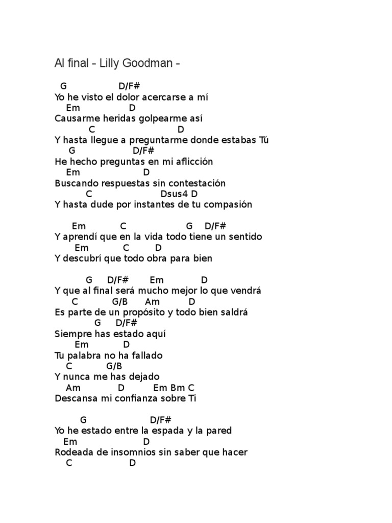 Y Al Final Lilly Goodman Letra - C g/b am d es parte de un proposito y todo bien saldra. Y Al Final Lilly Goodman Letra / Play song with guitar, piano, bass, ukulele.